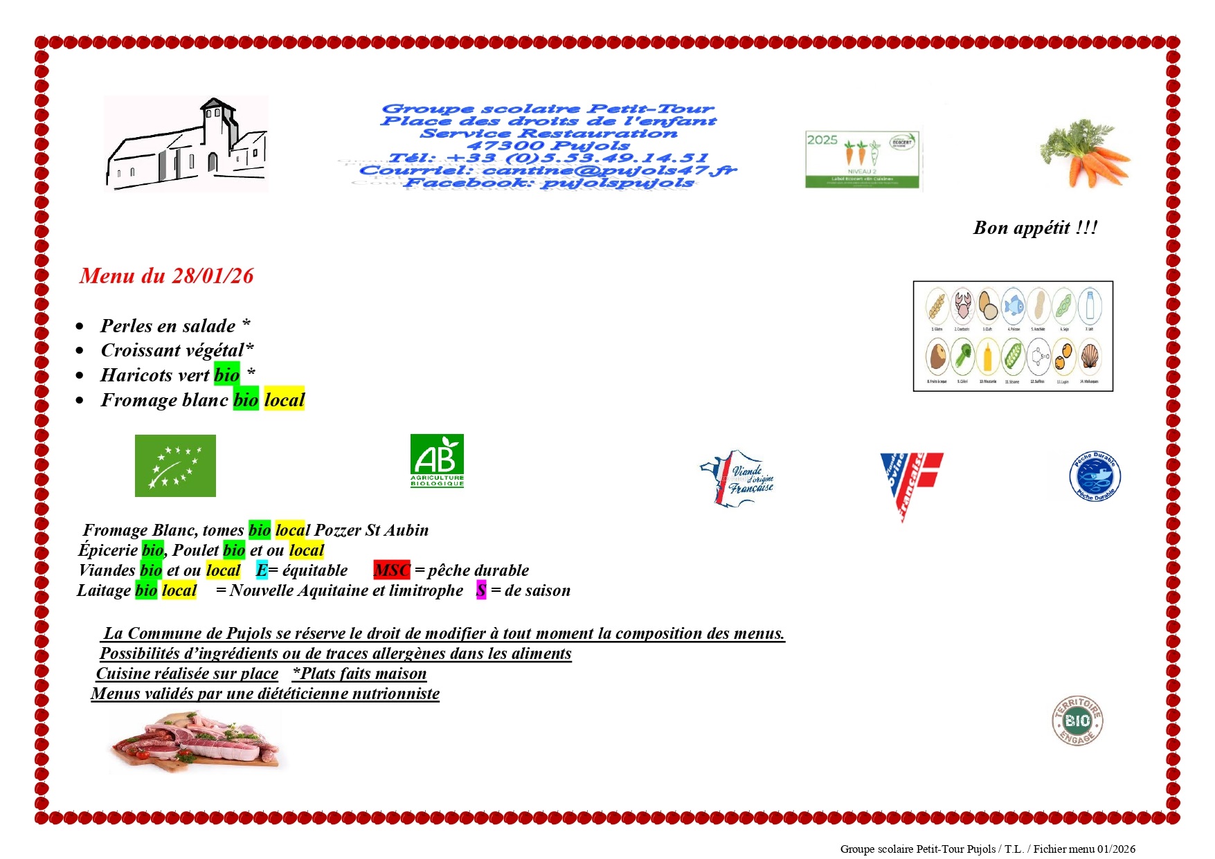 Les inscriptions sont de droit pour les enfants résidant à Pujols ; elles sont soumises à dérogation pour les enfants hors de la commune. Elles se font