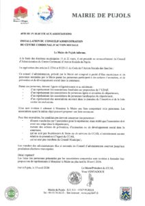 A la Suite des élections municipales 15 et 22 mars, il est procédé au renouvellement du Conseil d’Administration du Centre Communal d’Action Sociale de Pujols.