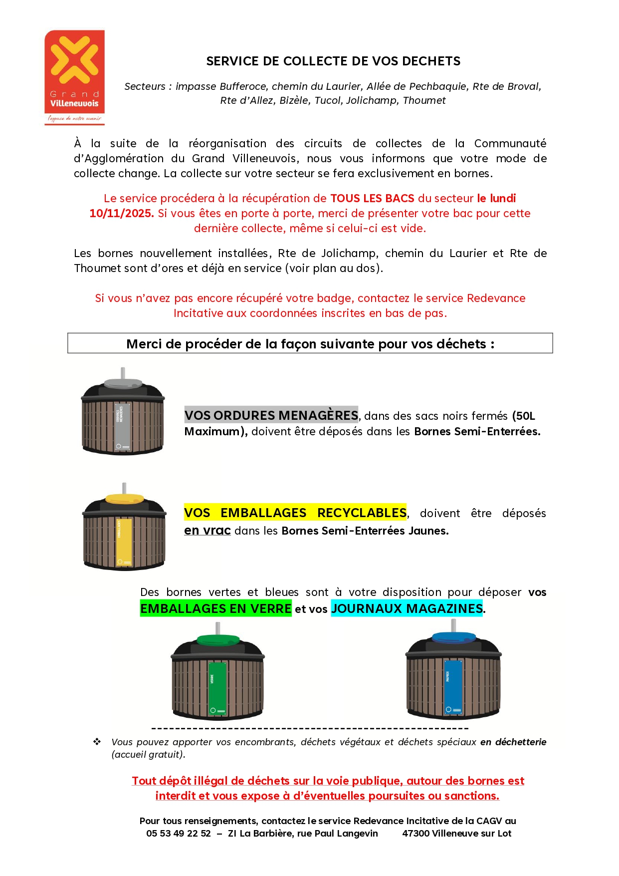 TOUS LES BACS DES SECTEURS SERONT COLLECTÉS ET RÉCUPÉRÉS