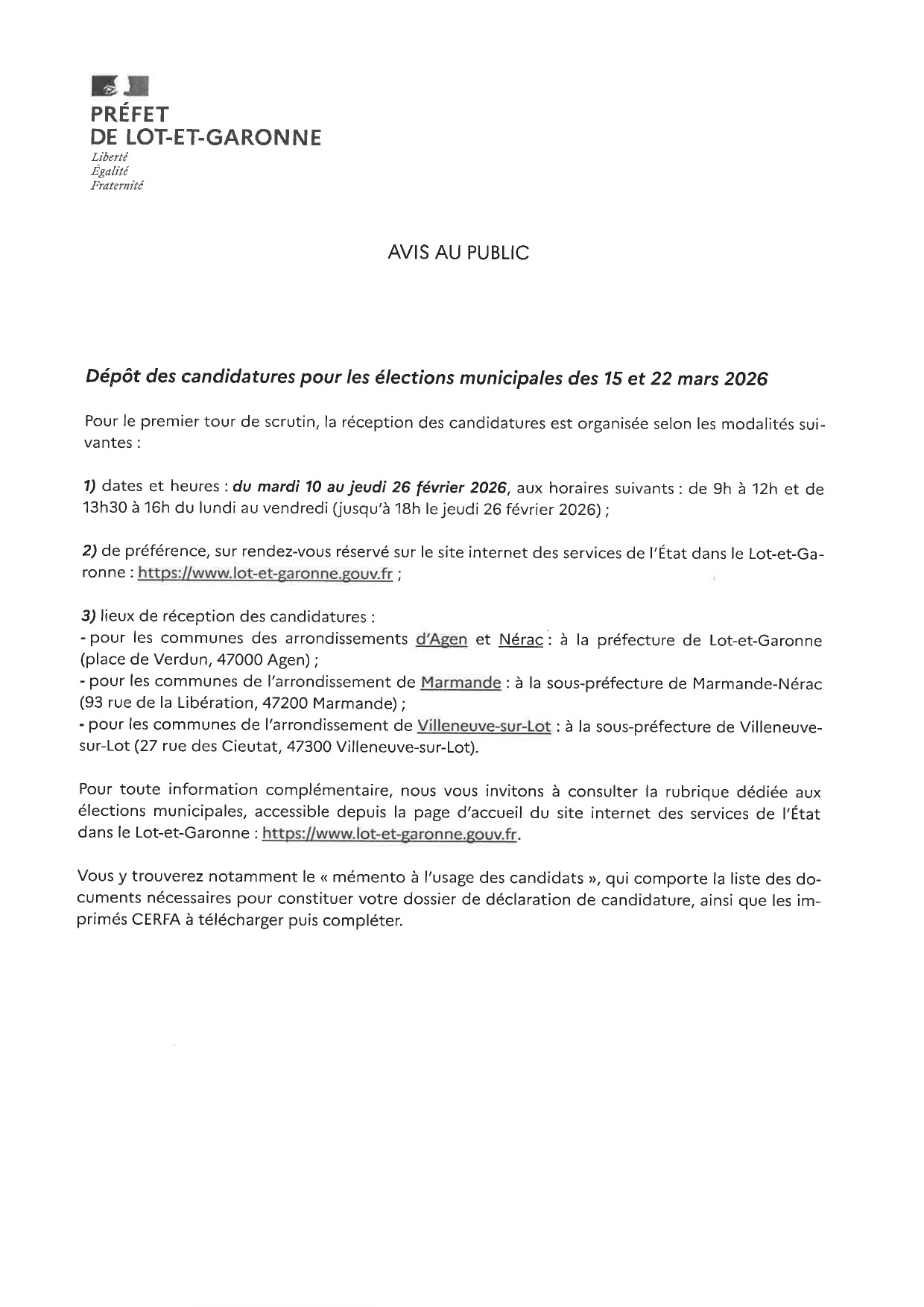 Accueil > Évènements > Actualité > Dépôt des candidatures pour les élections municipales des 15 et 22 mars 2026