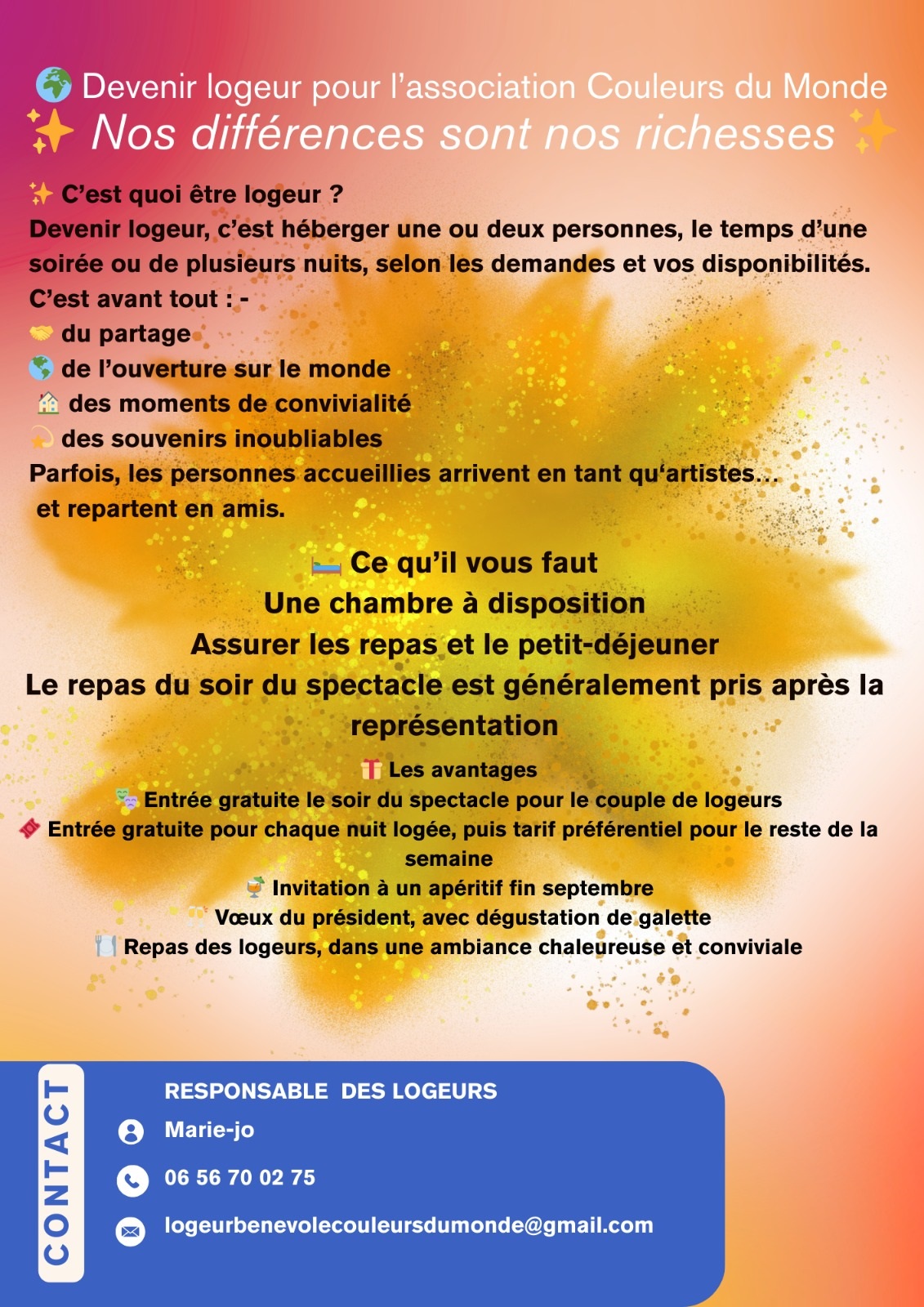 Devenir logeurs 2026 pour l’association Couleur du Monde
