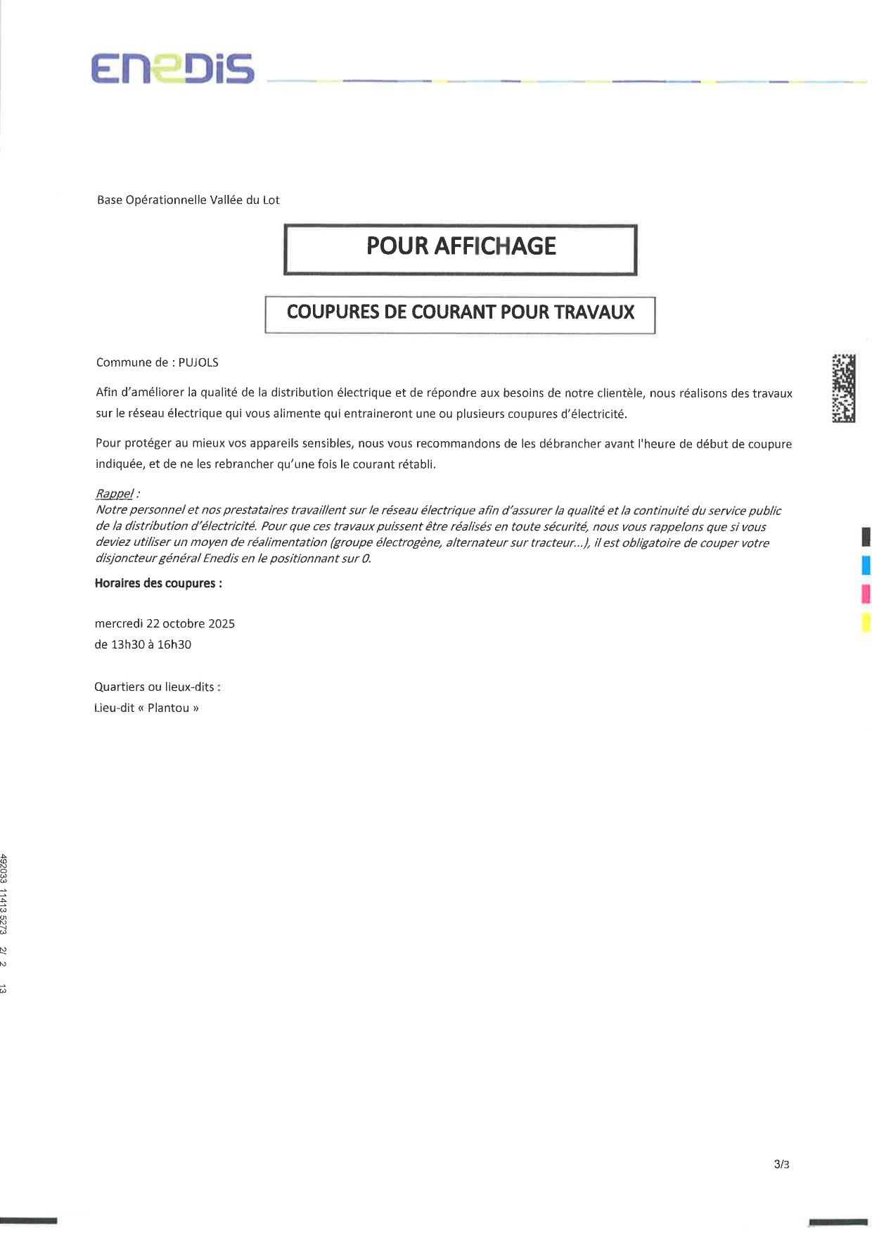 ENEDIS – Avis de Coupure de Courant