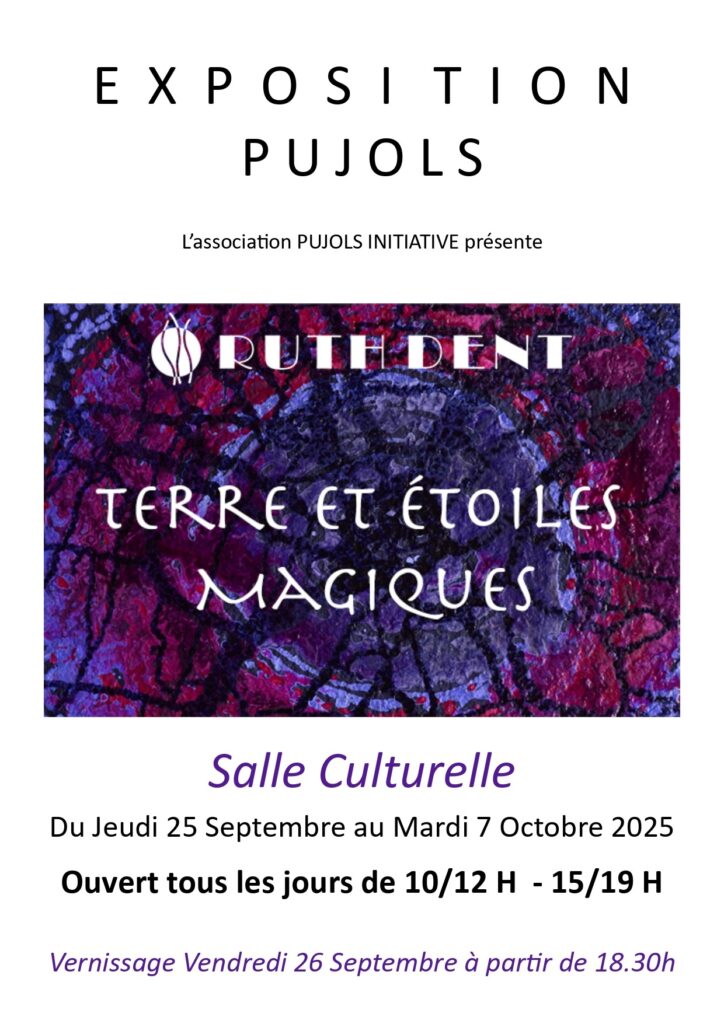 Pujols Initiatives présente l’exposition « Terre et Étoiles Magiques » de Ruth DENT à la Salle Culturelle du 25/09 au 07/10