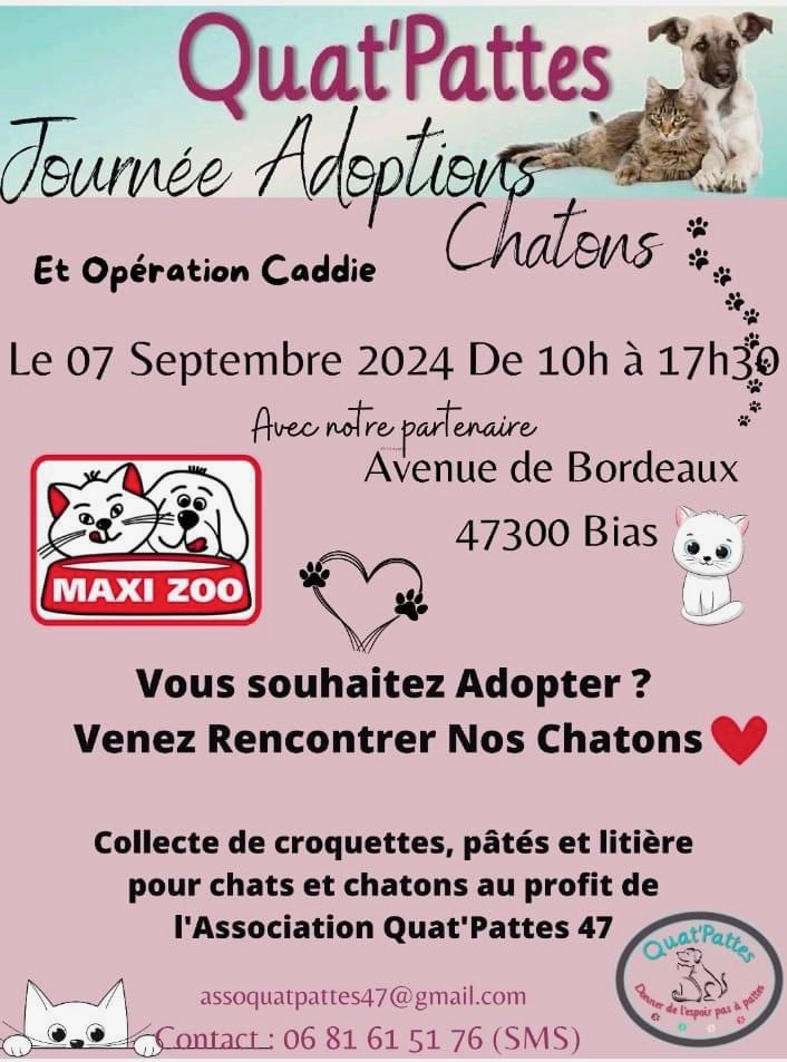 l’association Quat’Pattes organise une journée Adoptions Chatons et opération Caddie