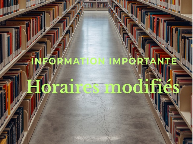 Accueil > Évènements > Actualité > Modification des horaires de la Bibliothèque
