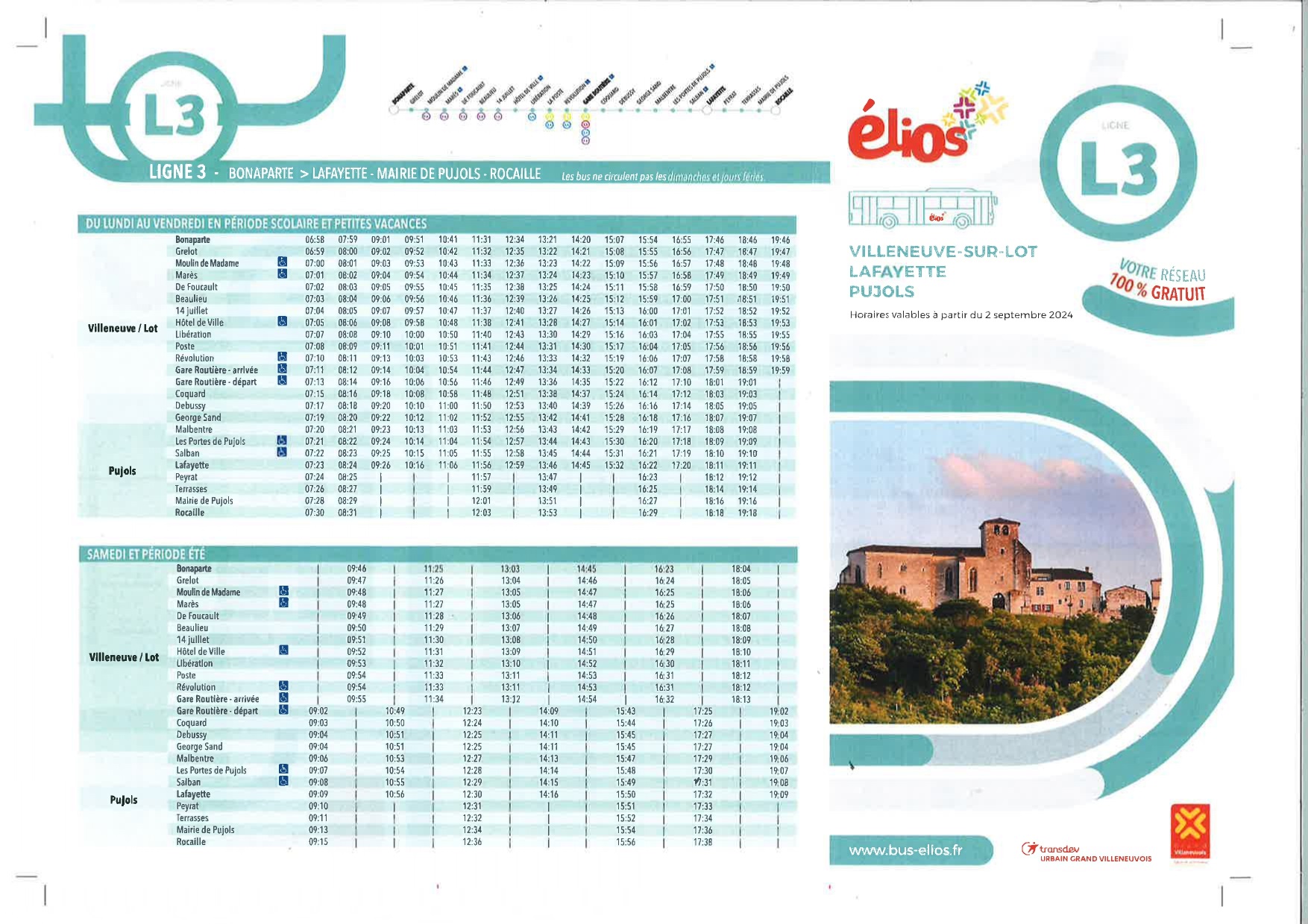 La ligne L3 s’étend aussi dans sa partie sud, c’est Pujols qui profitera de plus de dessertes quotidiennes, et la ligne atteindra désormais les portes du plateau de Lacassagne.
