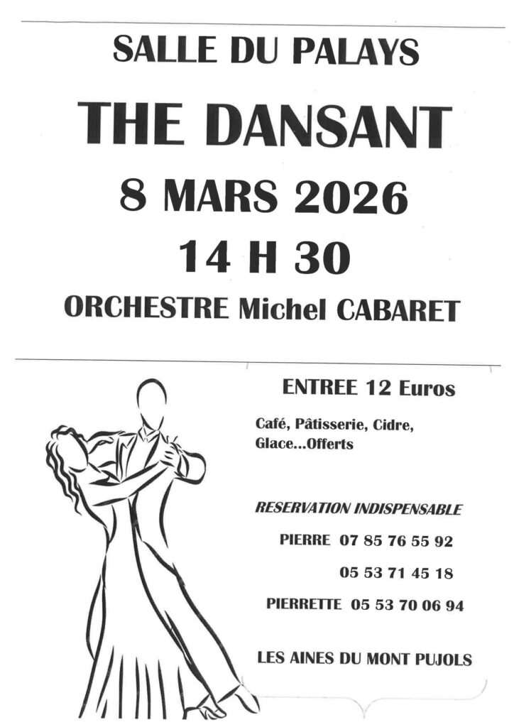 Les Ainés du Mont Pujols organise un thé dansant le dimanche 08 mars à 14h30 à la salle du Palay de Pujols